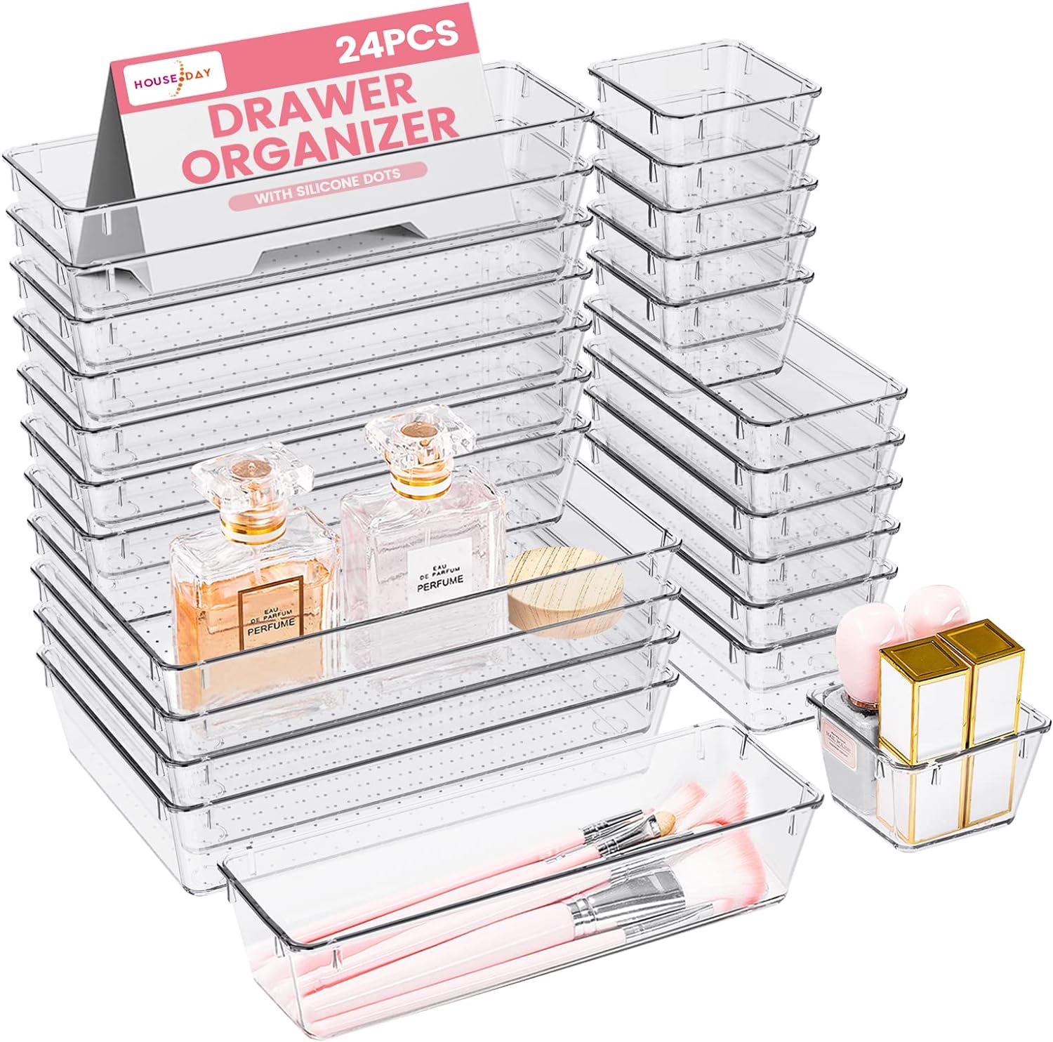 HOUSE DAY Makeup Drawer Organizer Trays, 4-Size Clear Drawer Organizers