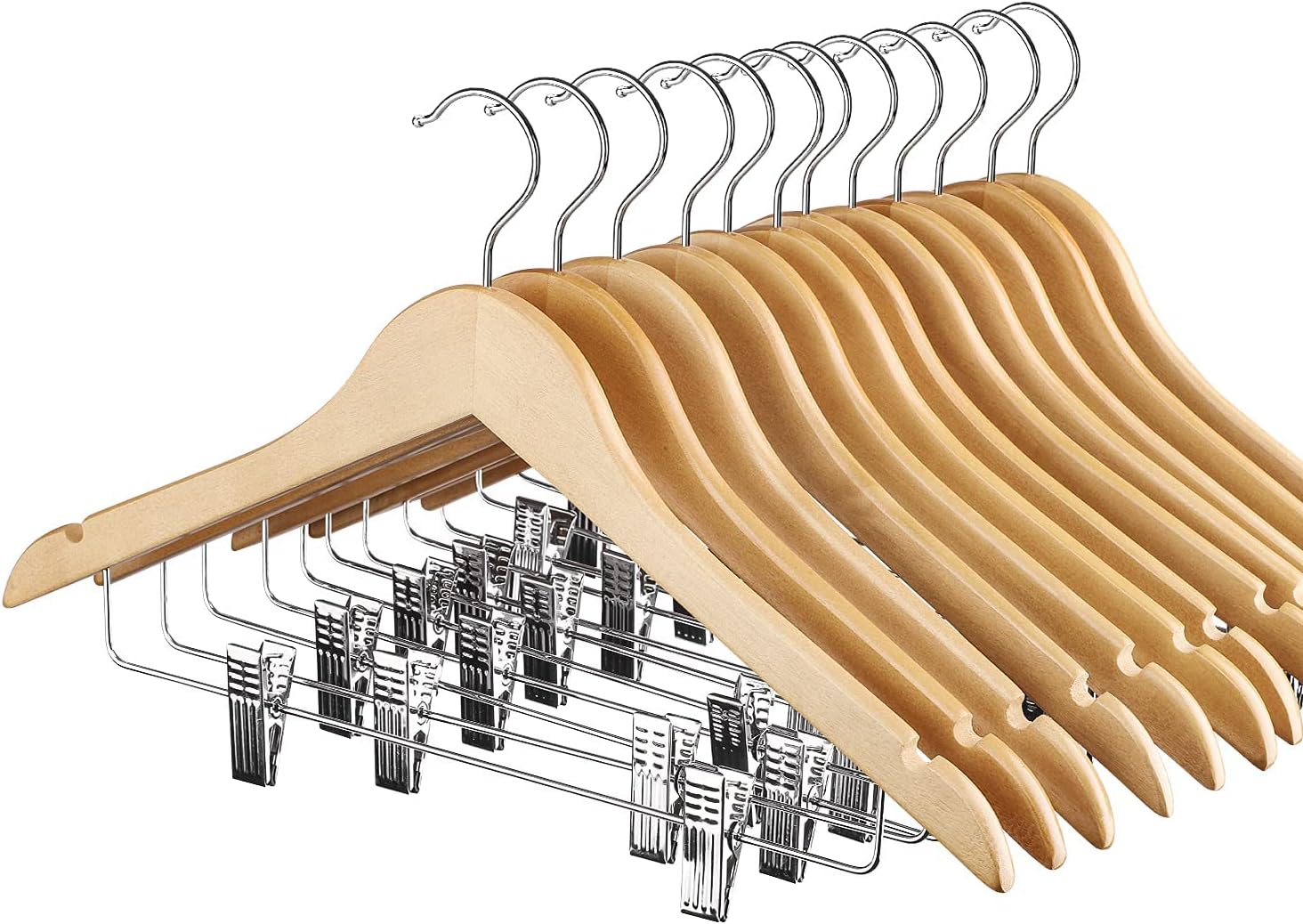 HOUSE DAY High-Grade Wooden Suit Hangers Skirt Hangers with Clips 12 Pack Natural