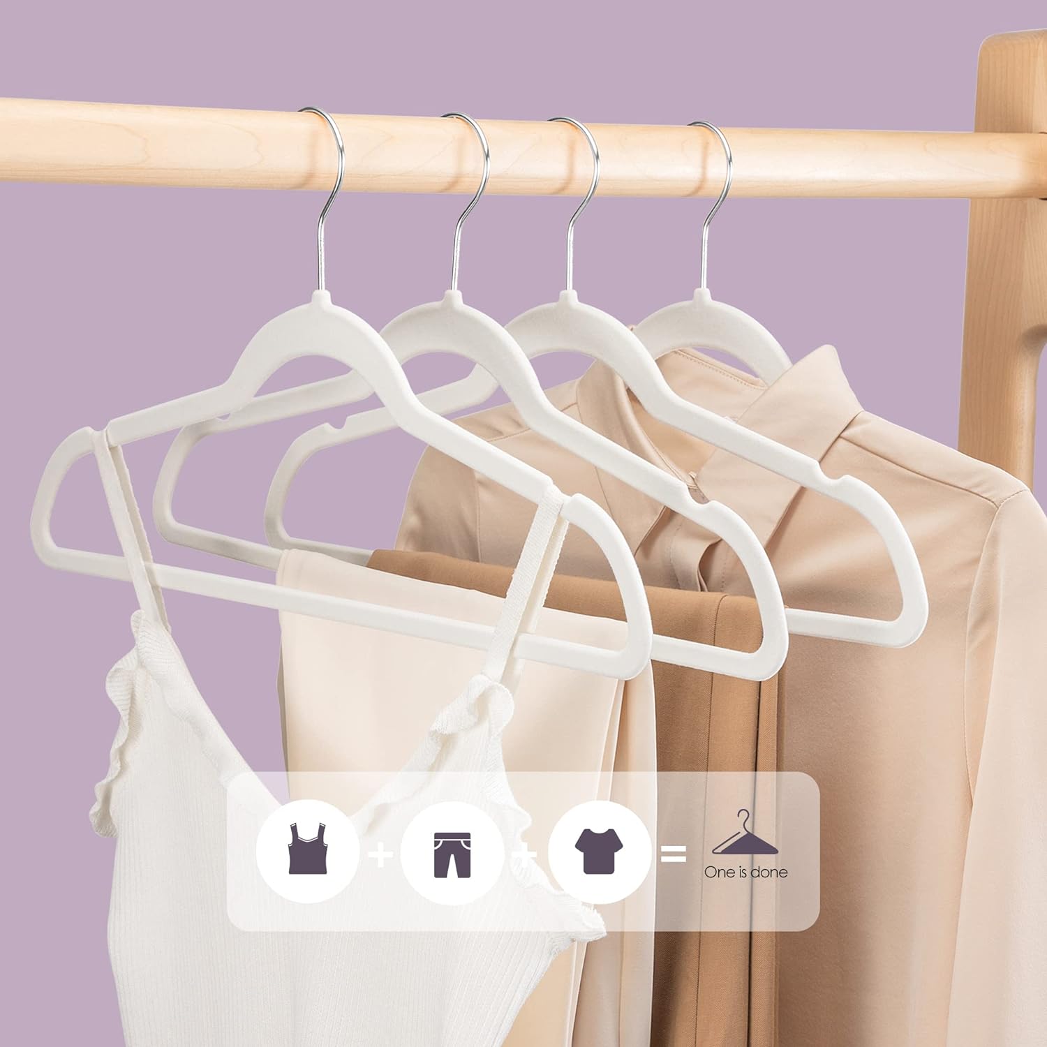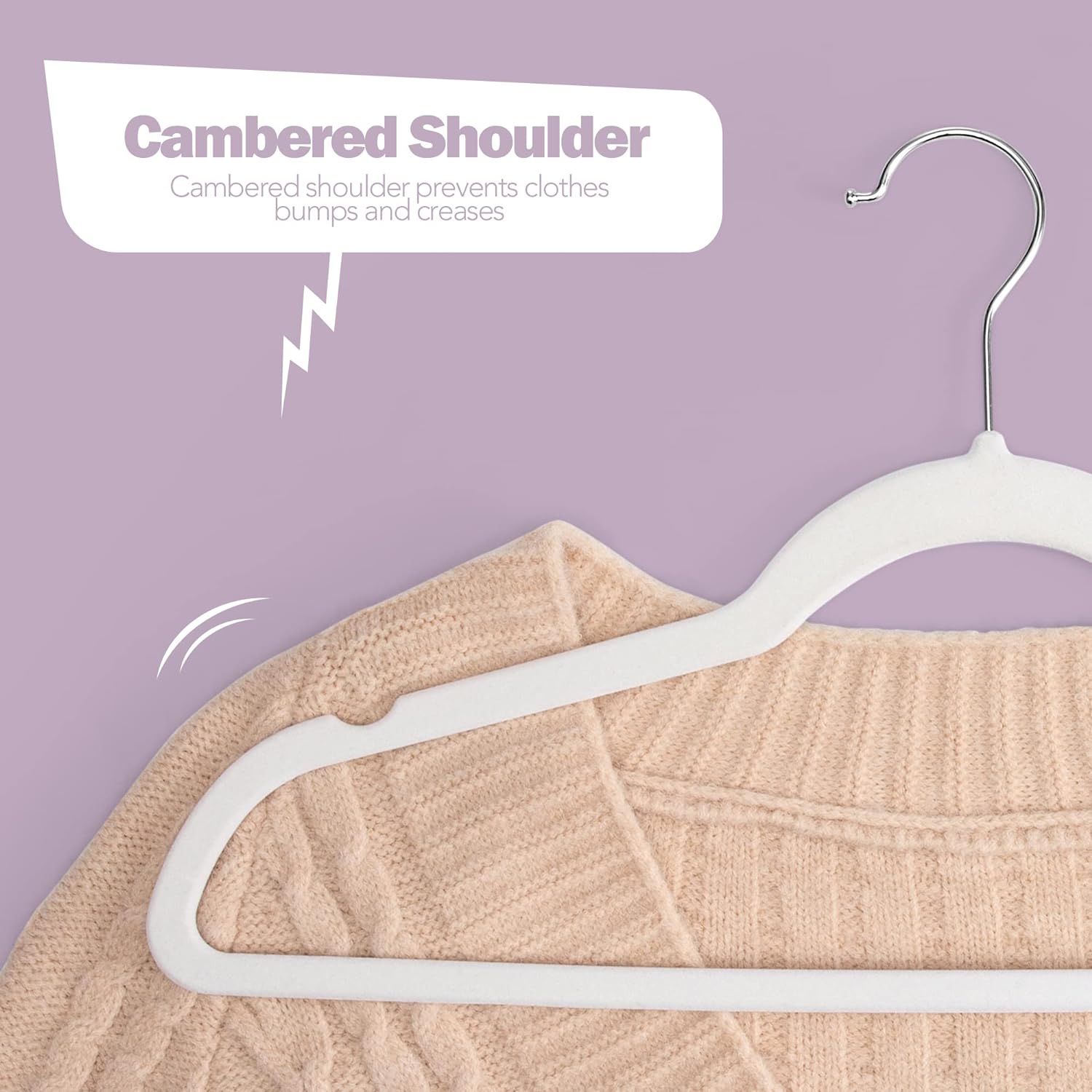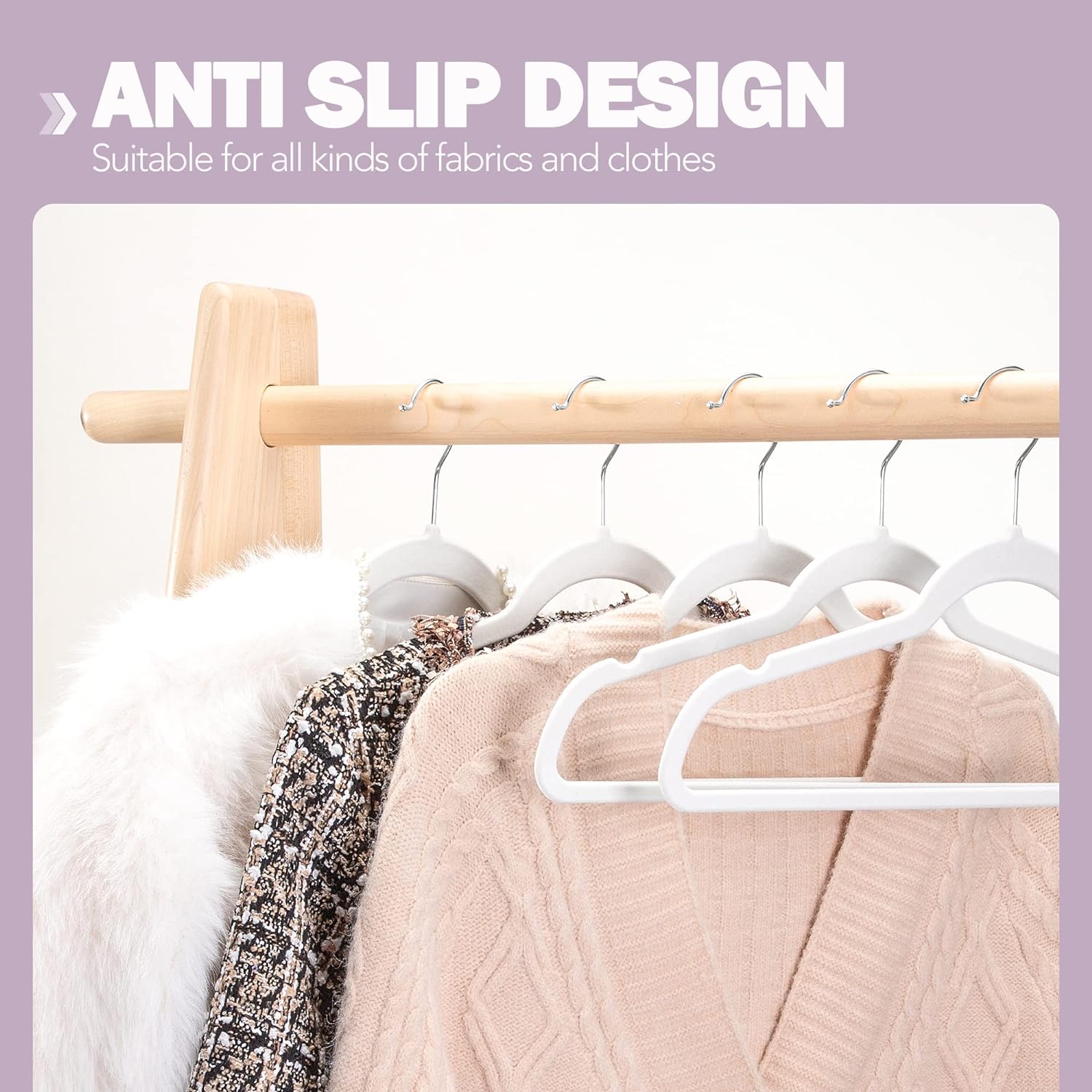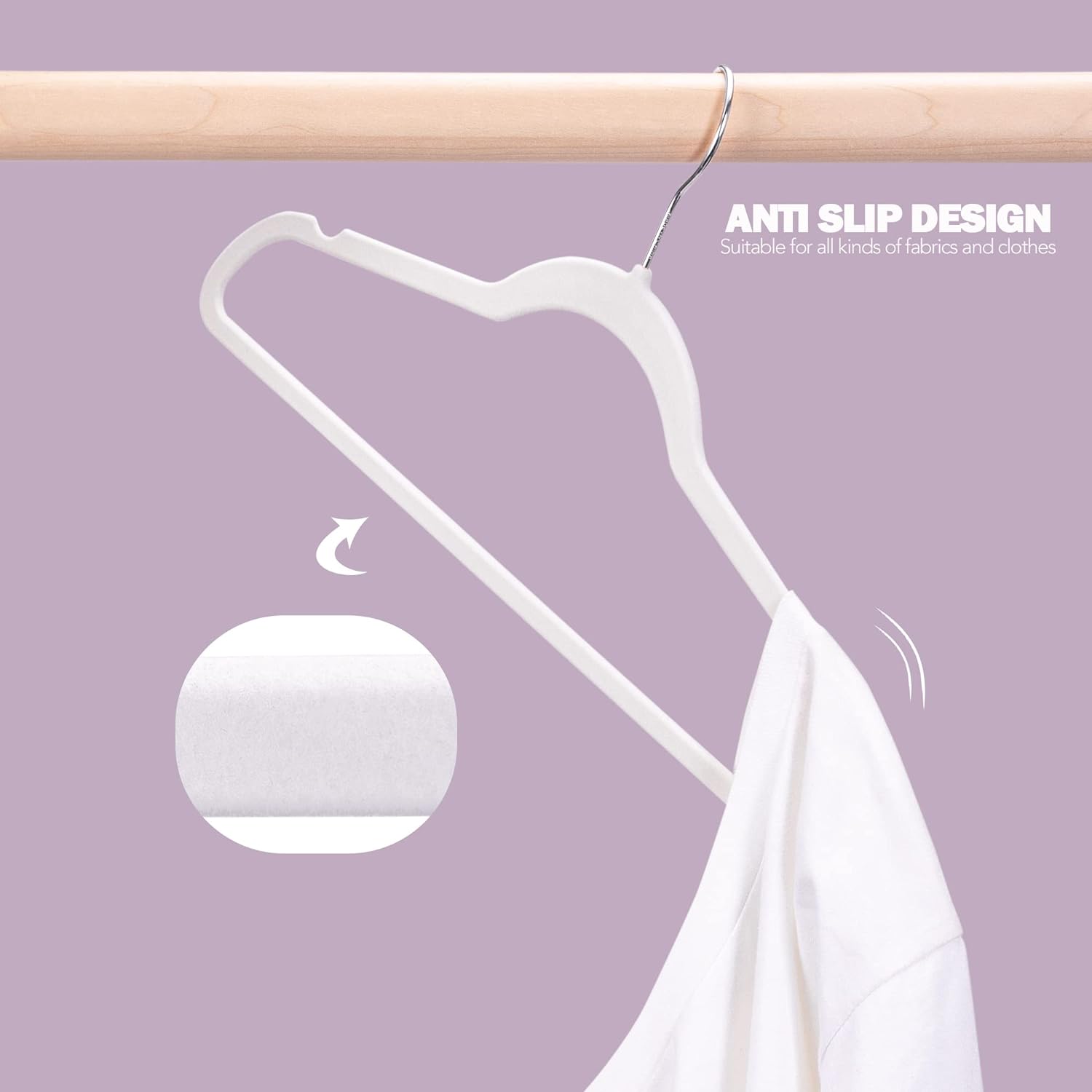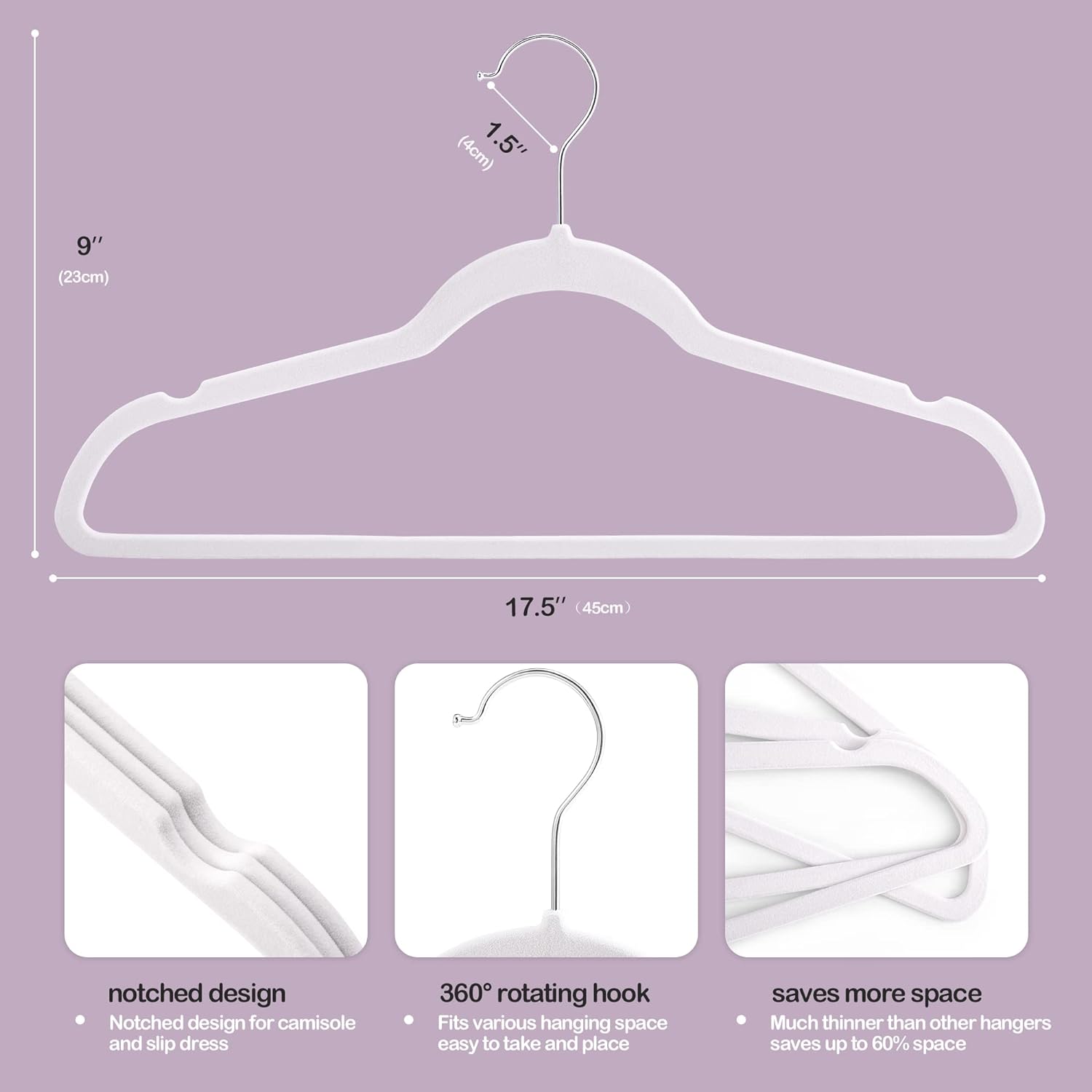 - Stylish Finish: Soft and luxurious velvet, unlike plastic or metal hangers, is innocuous to both skin and garments. To keep the fuzz from shedding off and stain your clothing, we used the finest velvet material for all our velvet hangers; it also prevents clothes from slip-off the velvet flocked hangers.