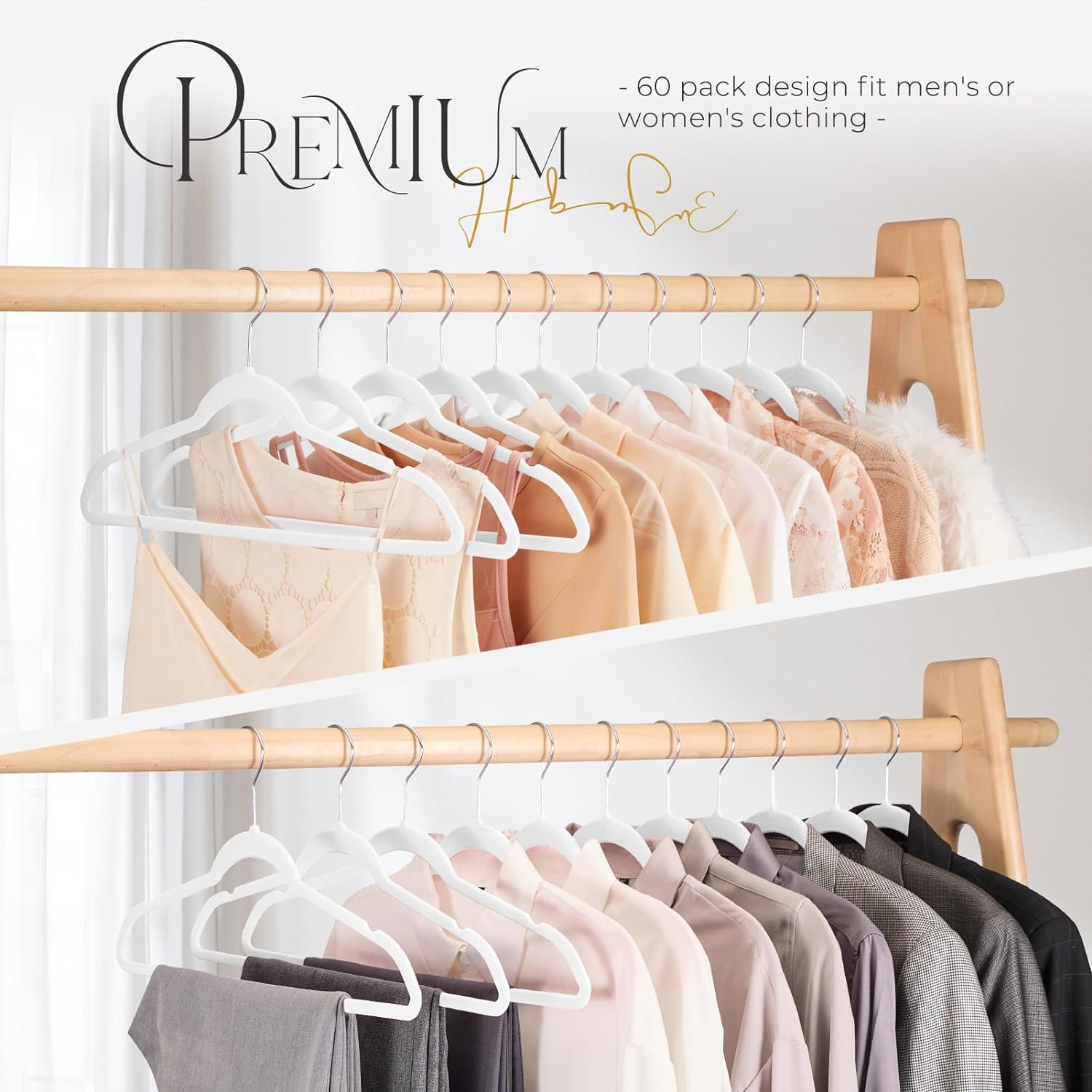 HOUSE DAY 17.5 Inch Silver Hook Velvet Hangers White 60 Pack