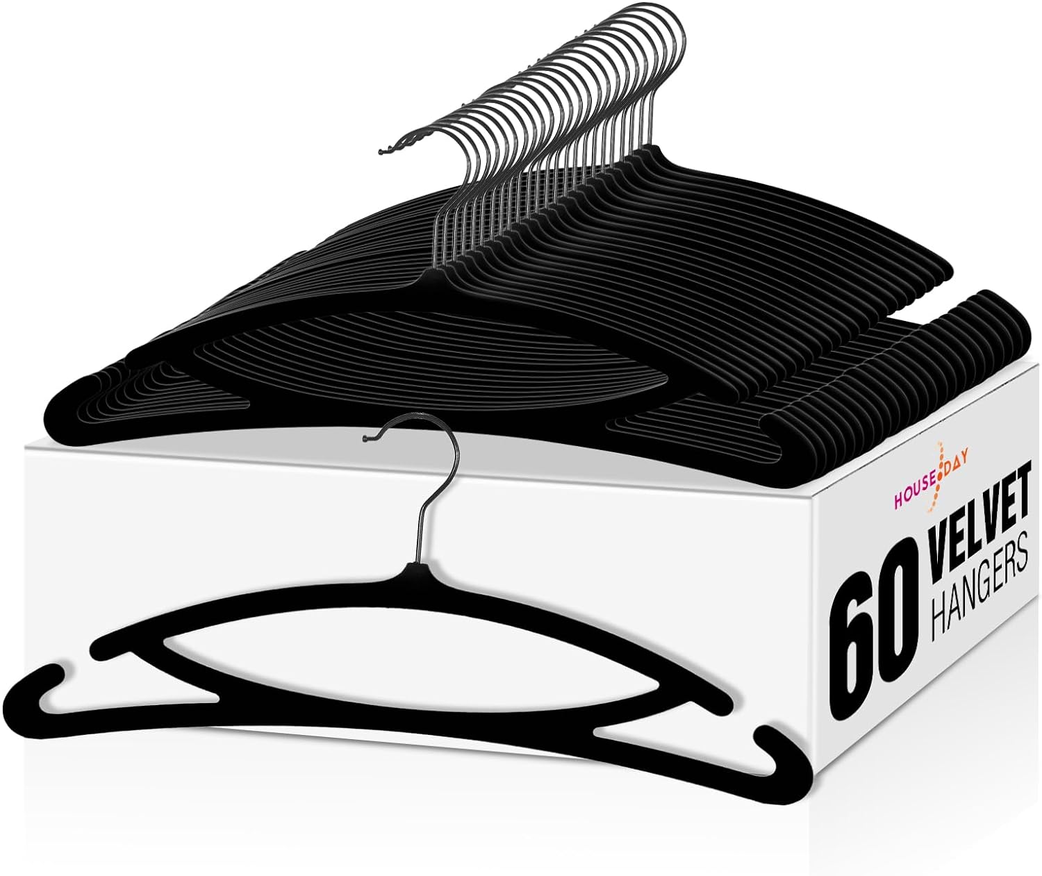 HOUSE DAY Black Velvet Hangers 60 Pack, Luxury Felt Hangers Non Slip Clothes Hangers