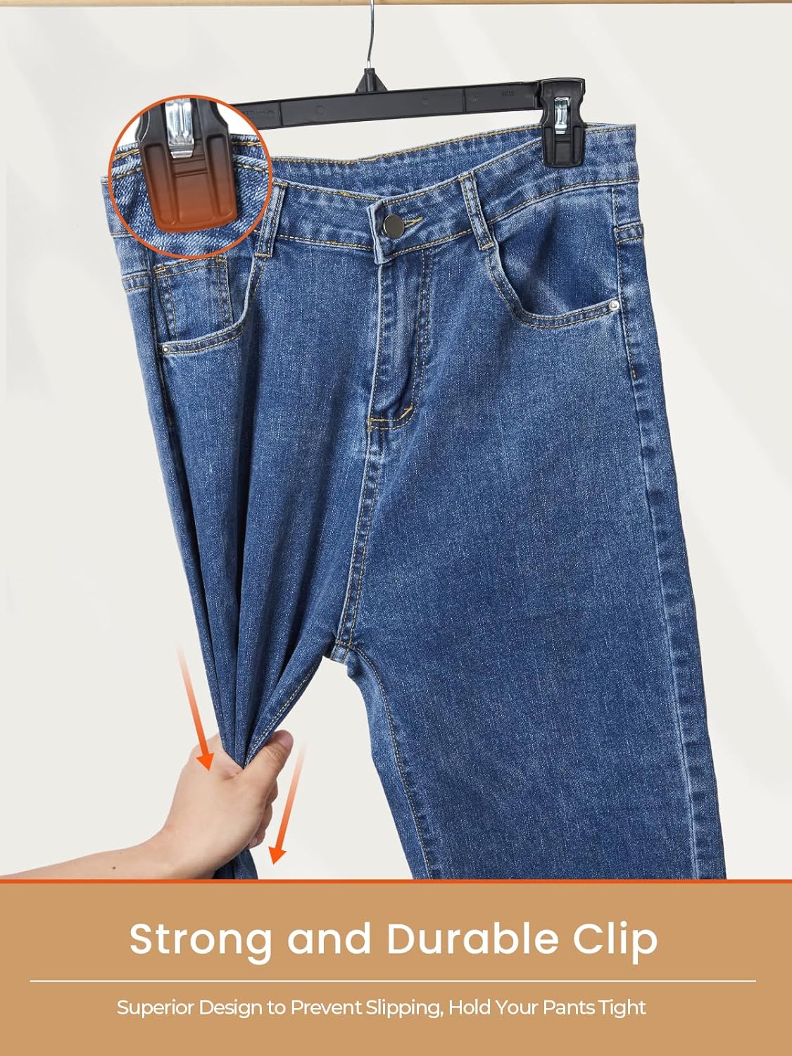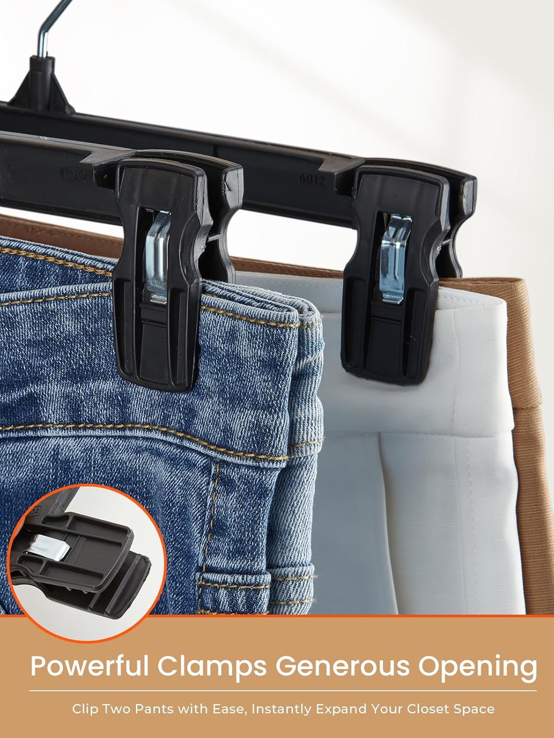 - Multipurpose and Space-Efficient: Includes 25 black plastic clip hangers, each measuring 12" in length and 6.5" in height—perfect for organizing pants, skirts, jeans, leggings, dresses, bras, and more. Great for use at home, in dorms, or retail displays.